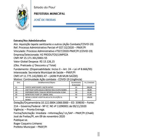 Vinculado: Processo Administrativo n°027/2020-PMJF/PI (COVID-19)
