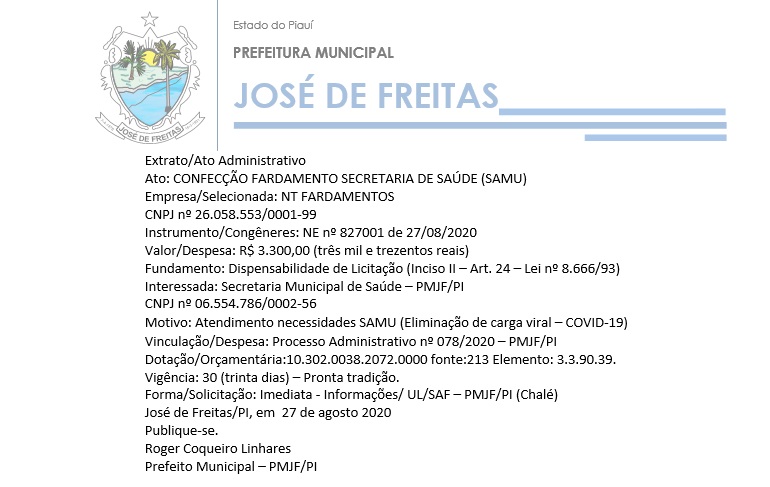 José de Freitas/PI, em 27 de agosto 2020