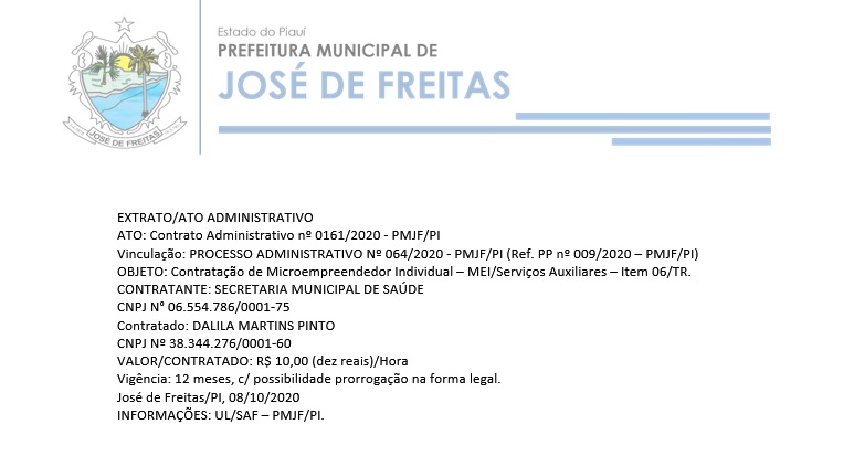 ATO: Contrato Administrativo nº 0161/2020 - PMJF/PI
