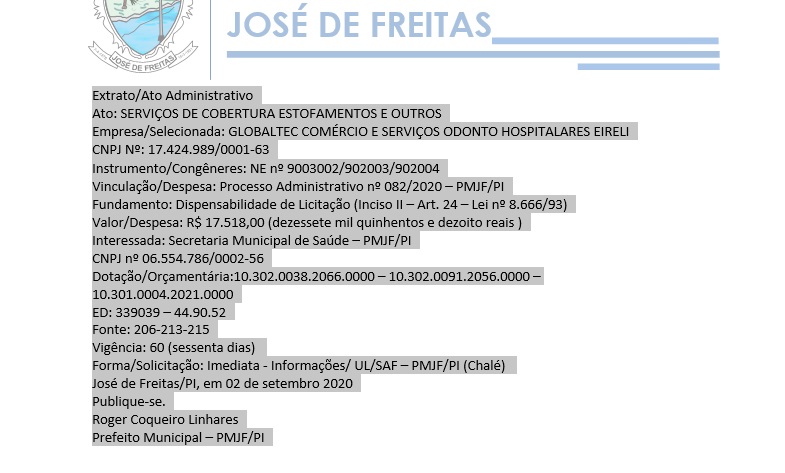 José de Freitas/PI, em 02 de setembro 2020