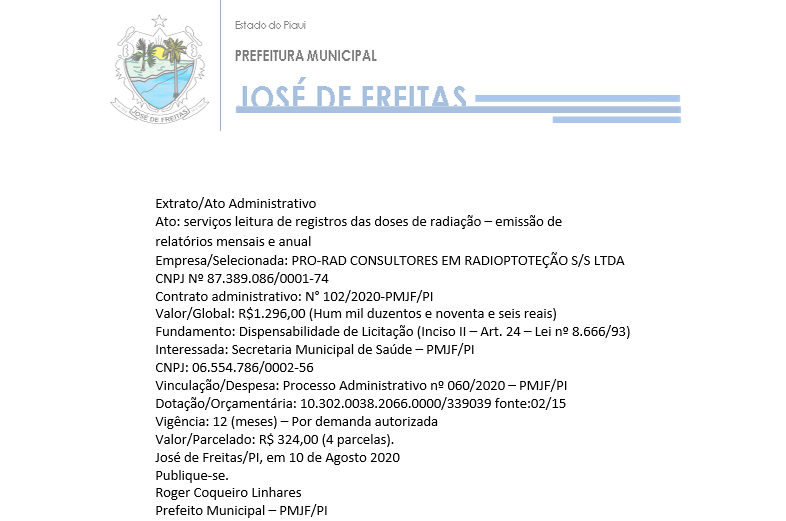 José de Freitas/PI, em 10 de Agosto 2020