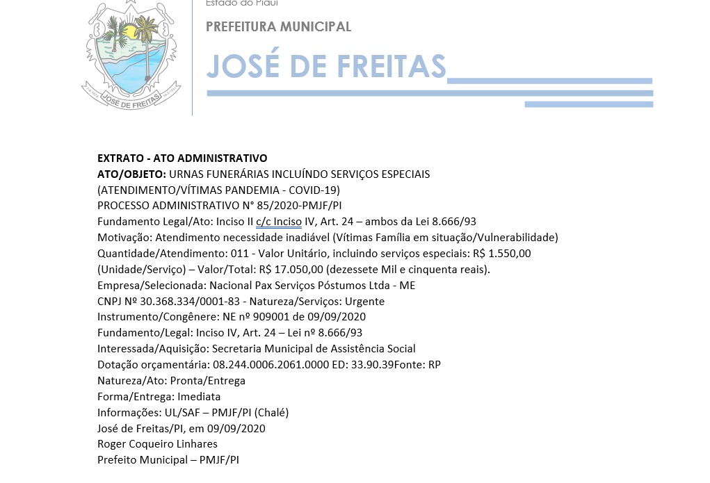 PROCESSO ADMINISTRATIVO N° 85/2020-PMJF/PI