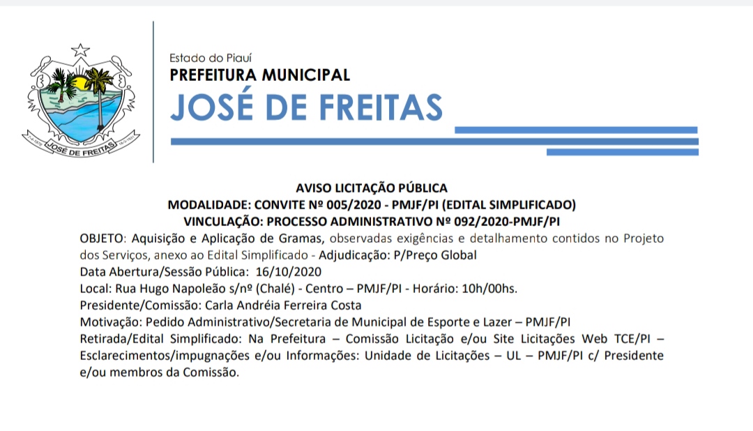 MODALIDADE: CONVITE Nº 005/2020 - PMJF/PI (EDITAL SIMPLIFICADO)