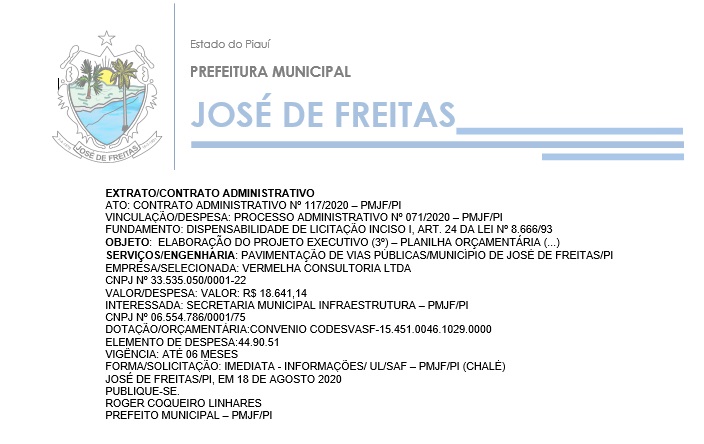 ATO: CONTRATO ADMINISTRATIVO Nº 117/2020 – PMJF/PI