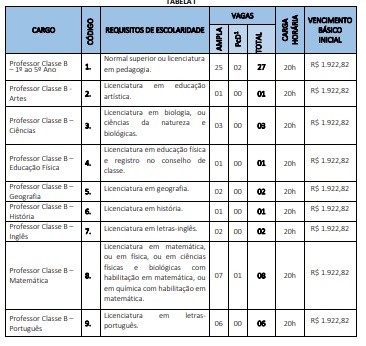 QUADRO DE VAGAS EDITAL Nº 01/2022 PROCESSO SELETIVO SIMPLIFICADO
