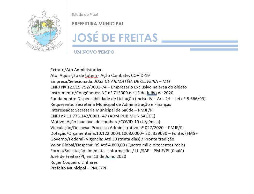Extrato/Ato Administrativo Ato: Aquisição de totem - Ação Combate: COVID-19