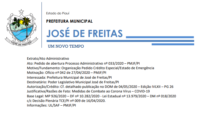 Extrato/Ato Administrativo| Pedido de abertura Processo Administrativo nº 033/2020