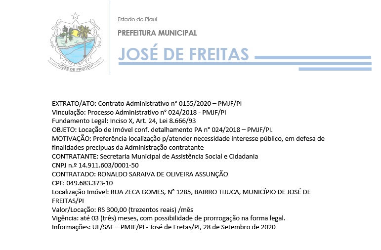 EXTRATO/ATO: Contrato Administrativo n° 0155/2020 – PMJF/PI