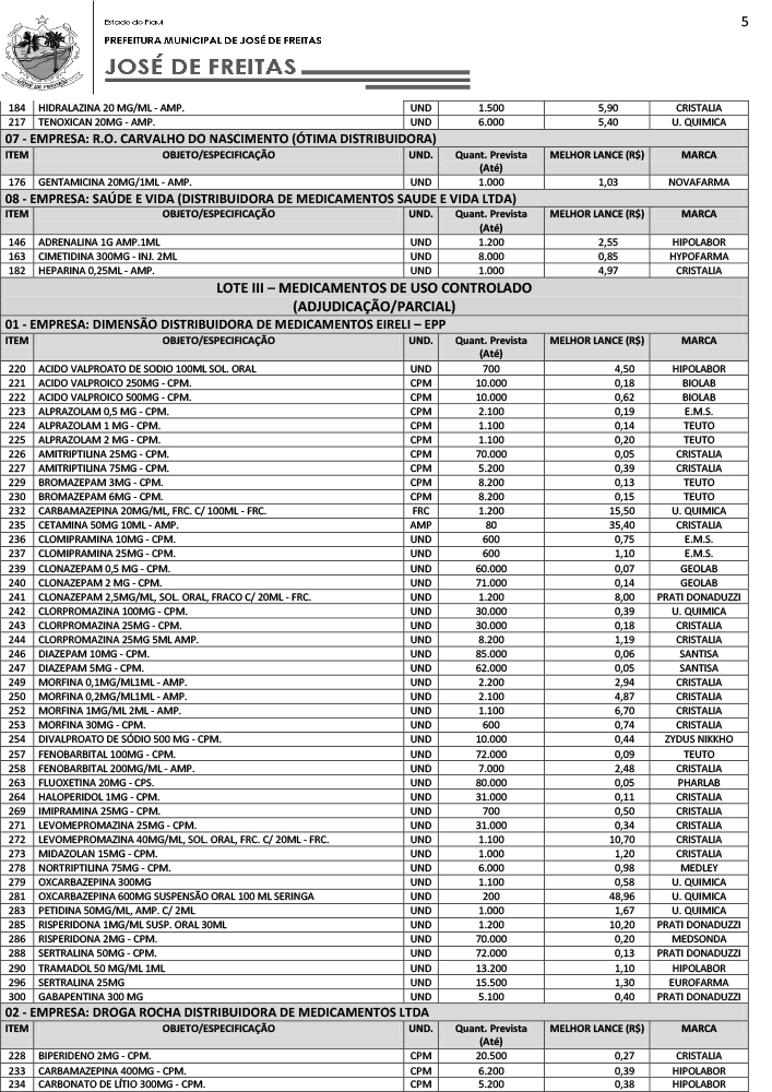 RETIFICAÇÃO - EXTRATO - ATA DE REGISTRO DE PREÇOS/SRP - PMJF/2020 MEDICAMENTOS, EQUIPAMENTOS E MATERIAIS (LOTES: I a IV)