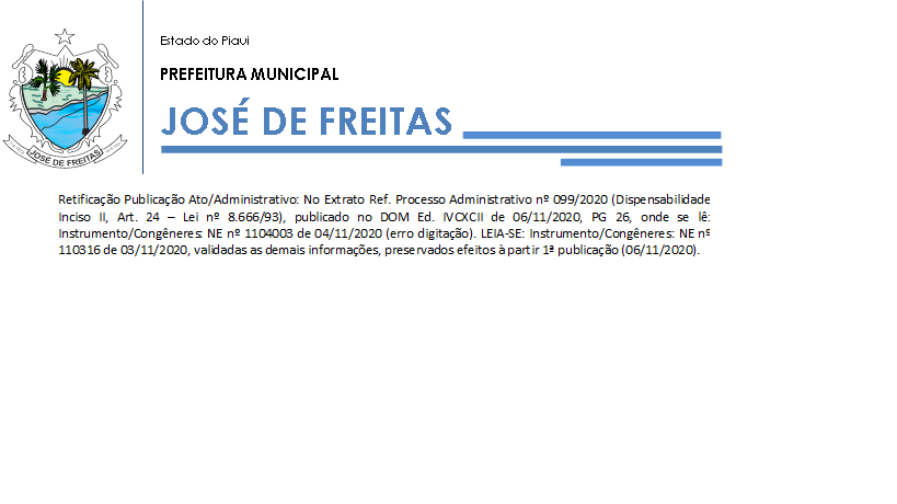 RETIFICAÇÃO PUBLICAÇÃO REF. PA Nº099/2020 – PMJF/PI - OBJETO: AQUISIÇÃO DE GANGORRA E OUTROS BRINQUEDOS.