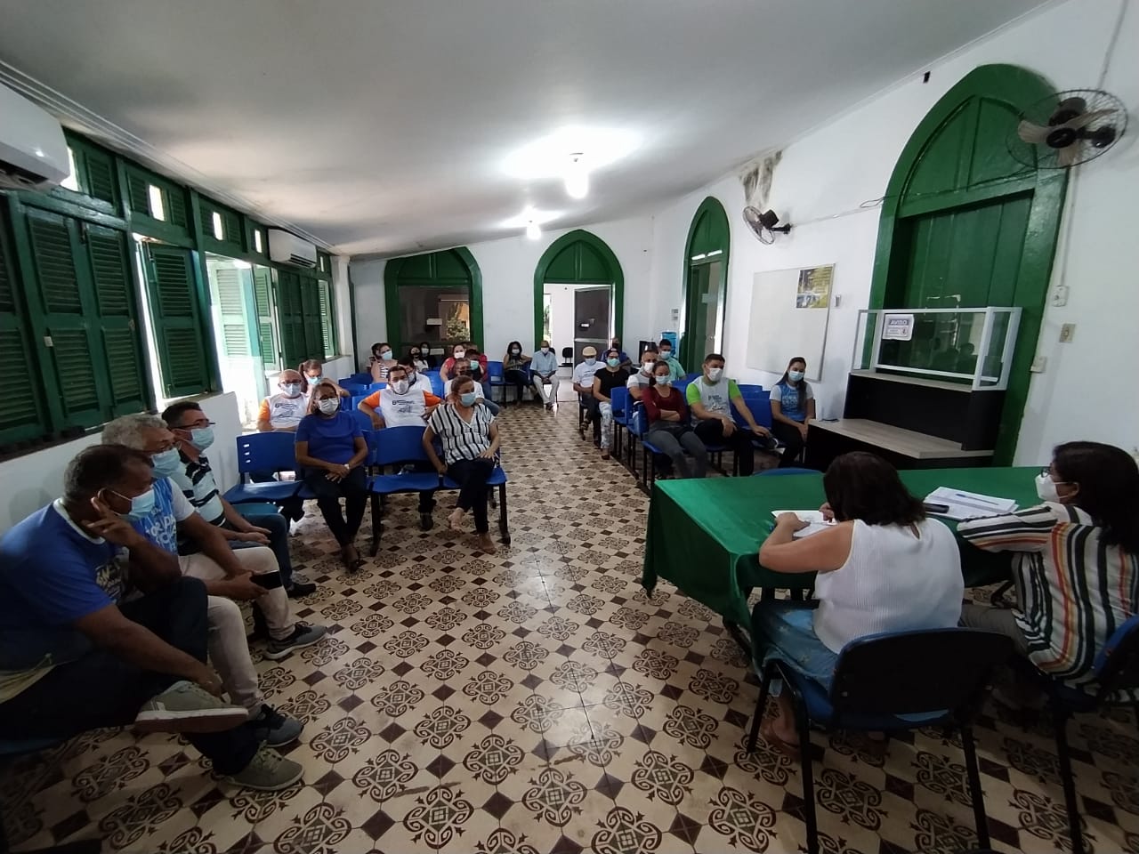 O encontro aconteceu no auditório do Centro de Formação e contou com a presença da Superintendente de Ensino Livramento Carvalho, Coordenador de Vigilância Sanitária Ramiro Soares, Coordenador do Comitê de Enfrentamento ao COVID-19 Neto Alves, representantes do Conselho Municipal de Educação Professor Antonio Carlos, Flávio Luz, Pedro Oliveira e Socorro Cruz, representantes da Secretaria Municipal de Saúde Thayzy e Enfermeira Ofélia, Presidente do SISMUJOF Vereadora Lúcia Ribeiro.