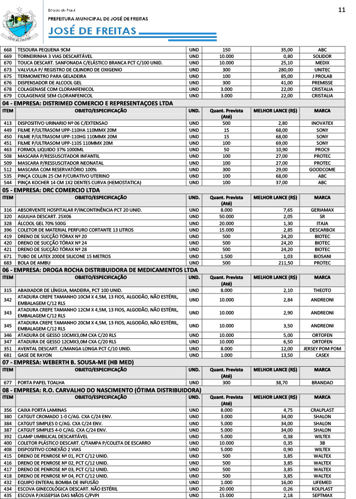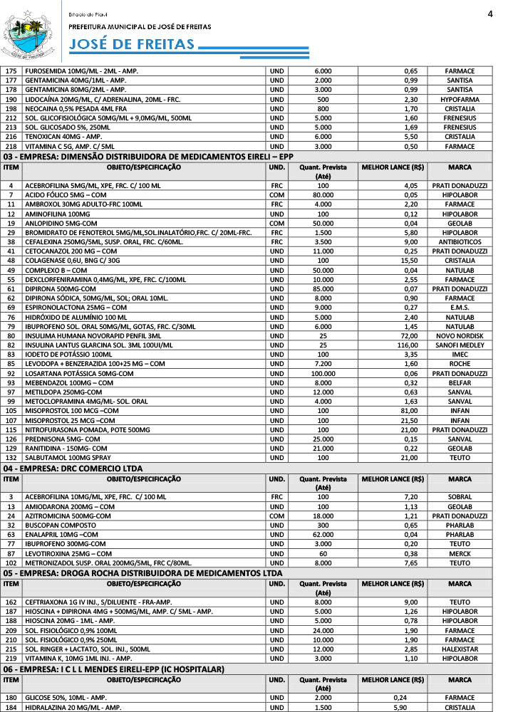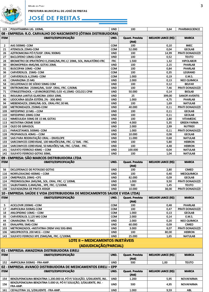 TERMO DE ADJUDICAÇÃO PARCIAL (LOTES I a IV) REF. PREGÃO PRESENCIAL Nº 007/2020 – PMJF/PI VINCULADO: PROCESSO ADMINISTRATIVO Nº 042/2020 – PMJF/PI