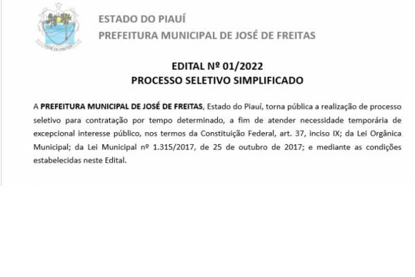 EDITAL Nº 01/2022 PROCESSO SELETIVO SIMPLIFICADO