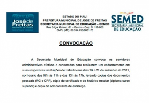 CONVOCAÇÃO SEMED - servidores administrativos efetivos e contratados