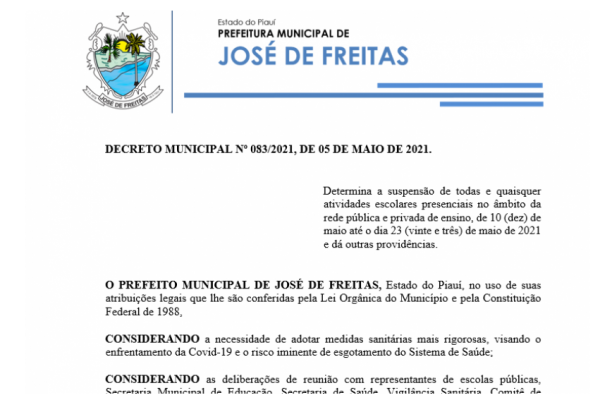 DECRETO MUNICIPAL Nº 083/2021, DE 05 DE MAIO DE 2021.