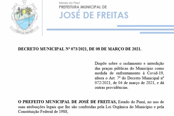 DECRETO MUNICIPAL Nº 073/2021, DE 08 DE MARÇO DE 2021.