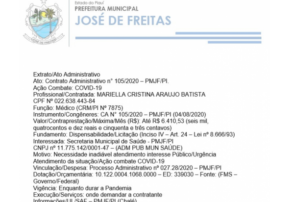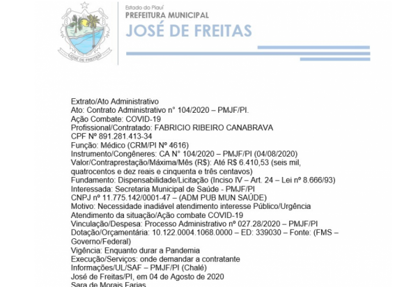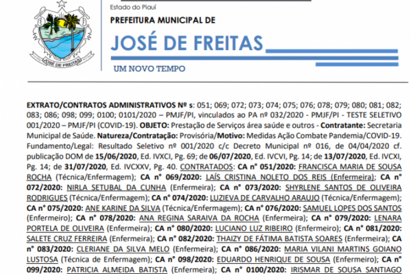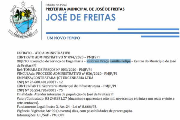 PROCESSO ADMINISTRATIVO Nº 064/2020 - PMJF/PI