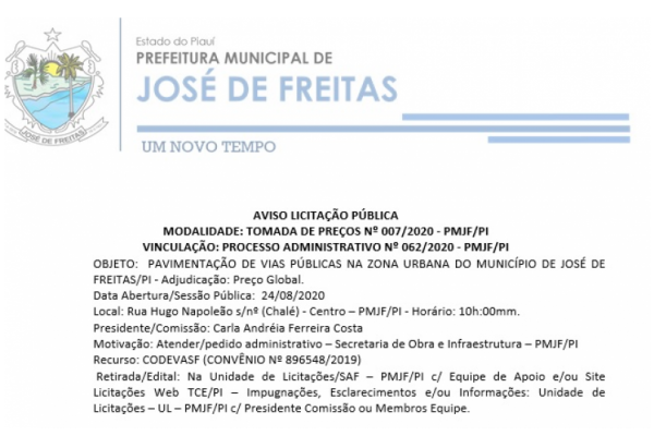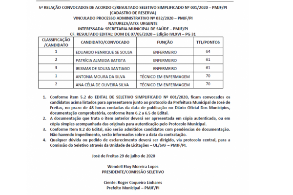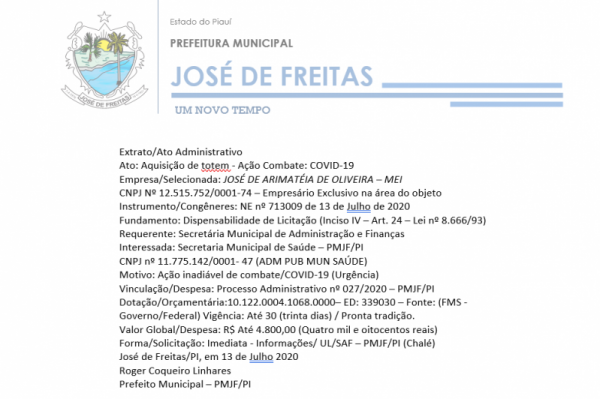 José de Freitas/PI, em 13 de Julho 2020