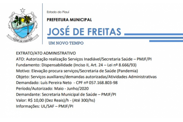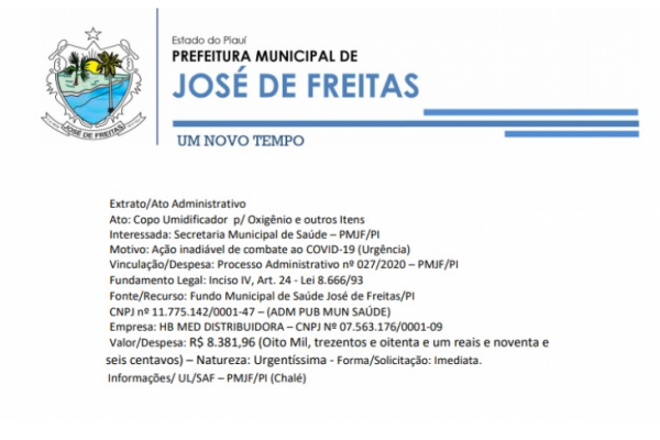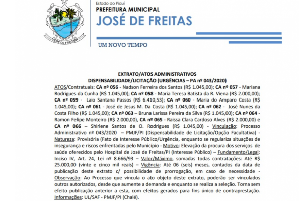 saúde oferecidos pelo Hospital de José de Freitas/PI (Interesse Público) – Fundamento/Legal: