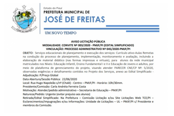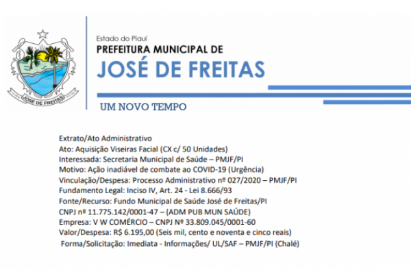 Administrativo nº 043/2020 – PMJF/PI (Dispensabilidade de Licitação/Opção Facultativa) -