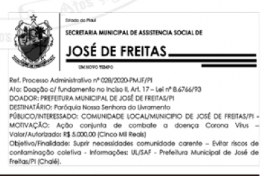 Senhor Secretário de Administração e Finanças do Município de José de Freitas/PI,
