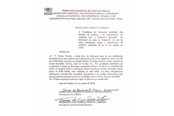 Resultado Final dos aprovados na prova de conhecimentos para o cargo de Conselheiro Tutelar de José de Freitas
