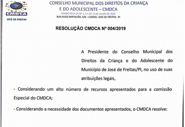 CONFIRA A RESOLUÇÃO 004/2019 DO CMDCA