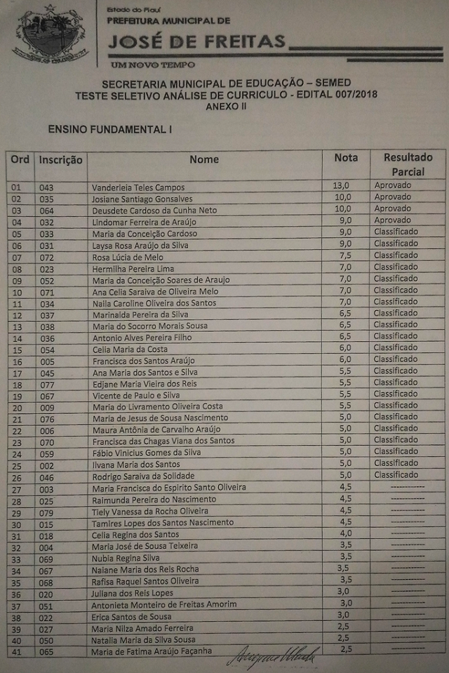 SELETIVO SIMPLIFICADO| Resultado final EDITAL N.º 007/2018 SEMED