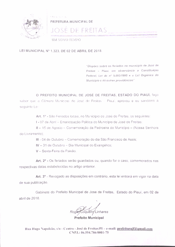 LEI N° 1.323 - Feriados Municipais