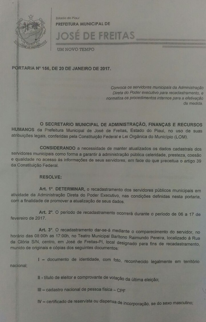 Prefeitura realizará recadastramento de servidores municipais de 06 a 17 de fevereiro